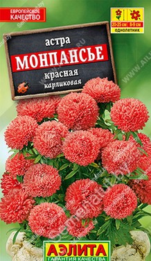 Невысокая компактная астра с необычайно обильным цветением. Густомахровые соцветия Ø 6-7 см настолько плотно покрывают растения, что листвы почти не видно. Кусты прочные, хорошо разветвленные, высотой 15-20 см и шириной 25-30 см. Растения холодостойкие, хорошо переносят заморозки до -3...-4°С. Для выращиванияв горшках, садовых контейнерах и балконных ящиках, в бордюрах.