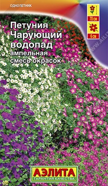 Ниспадающая петуния очаровывает красотой своих крупных атласных цветков. Свисающие побеги образуют великолепный, богато ветвящийся каскад, длиной до 70 см. Отличается обильным ранним цветением, которое продолжается с июня по сентябрь. Устойчива к дождю и ветру. Используют в клумбах, на бордюрах, рабатках, в подвесных корзинках. Посев проводят с февраля по март, поверхностно, под стекло (после появления всходов стекло убирают). Всходы появляются через 7-12 дней. Растения пикируют через 3 недели после посева. На постоянное место высаживают, когда минует опасность заморозков. При ранних сроках посева цветение начинается в мае, что очень удобно для выращивания растений на балконе, закрытых террасах, патио. Светолюбива и достаточно засухоустойчива. Предпочитает легкие, плодородные, хорошо дренированные почвы.