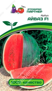 Айваз F1 один из современных лидеров среднераннего гибрида арбуза. Срок созревания 60-70 дней от момента высадки рассады на постоянное место. Растение очень мощное, с хорошим ветвлением и средней облиственностью. Плоды удлиненной формы, овальные, средние, массой 2,5-5 кг, с привлекательной внешней окраской, не желтеющие при засухе и дозаривании. Мякоть очень сочная и вкусная, с высоким содержанием сахаров, насыщенного темно-красного цвета. Славится своими способностями сохранять долгое время сочный и сладкий вкус. Плоды хорошо транспортируются и долго сохраняют товарный вид, благодаря плотной и крепкой коре. Гибрид обладает высокой сопротивляемостью фузариозу и другим патогенам. Если оценивать гибрид по урожаю, внешнему виду ягод, окраске мякоти, по накоплению сахаров и по общей оценке вкуса, - то Айваз F1 бы получил высший балл и вошел в группу "любимчиков". Сила и неприхотливость делают гибрид универсальным по срокам посева. Участок для посадки должен быть слегка возвышенным, хорошо прогреваемым и освещенным, защищенным от ветров. Рассаду высаживают, когда минует угроза заморозков, в возврасте 3-4 настоящих листьев. В открытый грунт арбуз высаживают по схеме 140х100 см, в теплицы и парники - 70х70 см с использованием шпалер. Урожайность 2,7-5,1 кг/м²