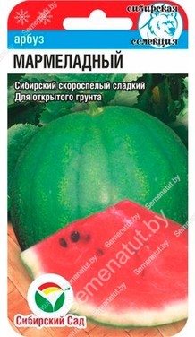 Скороспелый сорт алтайской селекции для открытого фунта. Растение среднеплетистое. Плоды круглые, темно-зеленые с более темными полосами, массой 2-4 кг. Мякоть ярко-красная, мармеладно-плотная, сочная, сладкая. Благодаря скороспелости сорта плоды успевают созревать даже в открытом грунте. Семена сеют в конце мая на глубину 8-10 см либо на рассаду во второй половине апреля. Температура почвы не долям быть ниже +15°С. Всходы появляются на 9-10 день. Рассаду не прищипывают, высадка в грунт по схеме 200x70 см. По мере роста растения формируют в один стебель. Дальнейший уход состоит из умеренного полива и подкормок растений комплексными минеральными удобрениями.