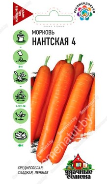 Среднеспелый (78-108 дня от всходов до технической спелости) сорт. Посев семян в грунт производится в конце апреля – начале мая на глубину 1 см, расстояние между рядками 15 см. Подросшие всходы прореживают, оставляя между растениями по 5-7 см. Розетка листьев полустоячая. Окраска корнеплода оранжевая, иногда к концу вегетации с зеленой или фиолетовой пигментацией головки, мякоть и сердцевина оранжевые, иногда светло-оранжевые. Корнеплод цилиндрический, тупоконечный, длиной 16 см, диаметром 4-5 см, массой 90-160 г. Сердцевина округлая и угловато-округлая. Поверхность гладкая. Корнеплод слегка приподнят над поверхностью почвы. Сорт характеризуется устойчивостью к цветушности, высокой лежкостью. Рекомендован для потребления в свежем виде, консервирования, замораживания и для зимнего хранения. Урожайность 2,5-6,6 кг/м2.