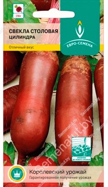 Очень популярный среднеспелый сорт свеклы. Образует темно-бордовые корнеплоды цилиндрической формы массой 250 – 500 г. Мякоть, нежная, темно-бордовая, без колец, отличного вкуса. Используется для домашней кулинарии, длительного зимнего хранения и консервирования. Отличается высокой урожайностью и товарностью, выравненностью корнеплодов. Посев семян производится непосредственно в теплую влажную почву на глубину 2 – 4 см, с междурядьем 30 см и расстоянием между растениями в рядке 8 – 10 см.