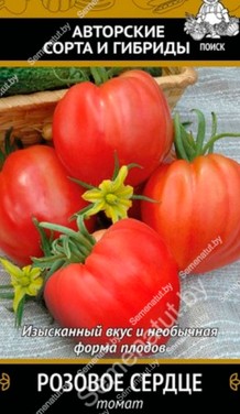 Изысканный вкус и необычная форма плодов. Для плёночных теплиц. Раннеспелый сорт. Период от всходов до начала плодоношения 85-90 дней. Растение высокорослое, требует подвязки и формирования куста. Плоды сердцевидной формы, слаборебристые, розового цвета. Масса 200-230 г (до 300 г). Сорт устойчив к альтернариозной пятнистости листьев, кладоспориозу, вирусу табачной мозаики. Универсальное использование.