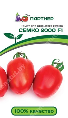 Гибрид Семко 2000 раннеспелый. От полных всходов до созревания 90-93 дня. Растение детерминантное, высотой 55-60см. компактное, слабооблиственное. Соцветие простое, с 5-6 плодами. Первое соцветие закладывается над 5-7 листом, последующие — через 1 лист. Плоды удлиненно-кубовидные, гладкие, 2-3 камерные, плотные, массой 75-80 грамм. Вкусовые качества отличные. Окраска незрелого плода светло-зеленая, зрелого — красная. Устойчив к вирусу табачной мозаики, черной бактериальной пятнистости, альтернариозу и фузариозу. Урожайность F1 Семко 2000 9,5-10 кг/кв.м.