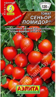 Высокопродуктивный томат-лиана для теплиц. Среднеспелый, от всходов до первого сбора плодов 111-115 дней. Индетерминантный, достигает высоты 3 м. Растения слабооблиственные, генеративного типа. Плоды в больших сложных кистях по 20-30 шт, созревают не одновременно. Рекомендуется постепенная уборка в стадии бланжевой спелости. За сезон на стебле образуется 4-5 кистей. Плоды гладкие, мясистые, разные по размеру, средней массой 65-80 г. При нормировании завязей в кистях достигают 180-200 г. Томаты лежкие, хорошо дозариваются, высокие вкусовые качества сохраняют 1-1,5 месяца. Урожайность при достаточном питании – 20-25 кг с куста. Сорт сравнительно устойчив к фитофторозу.